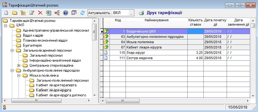 Спільно з довідником Тарифікація:Графи тарифікації довідник використовується для для формування “Тарифікаційного списку працівників” (поки тільки для працівників медичної галузі) |