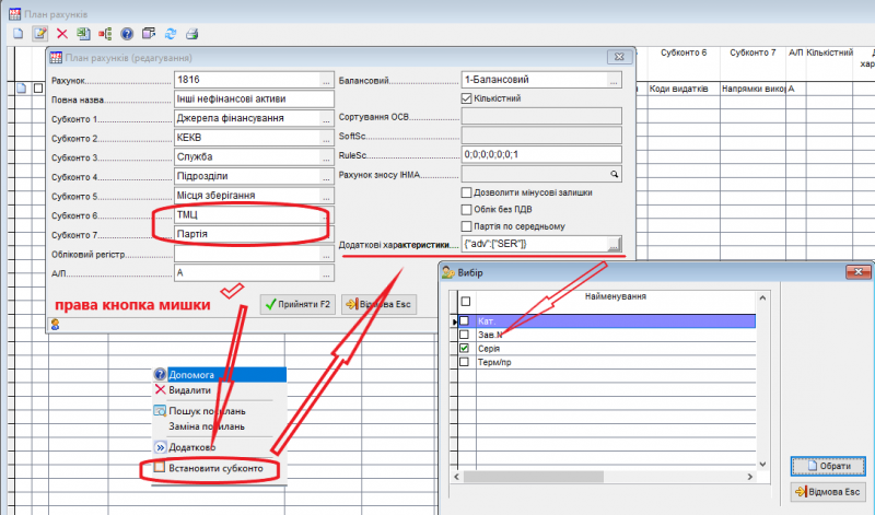 Щоб бланки суворої звітності (БСЗ) оприбутковувалися і списувалися за серією та номером необхідно на відповідних субрахунках налаштувати додаткову інформацію з даними показниками.