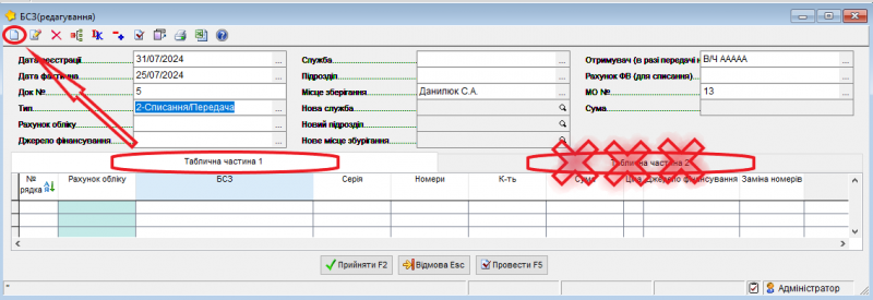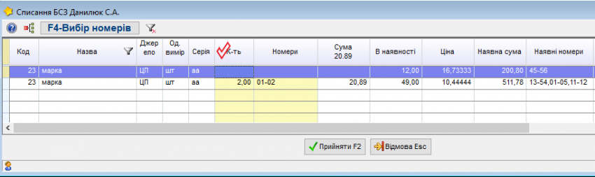 обираєте БСЗ, зазначаєте необхідну кількість, програма вам запропонує номера по порядку, але якщо необхідно списати чи перемістити інші номери скористайтеся кнопкою