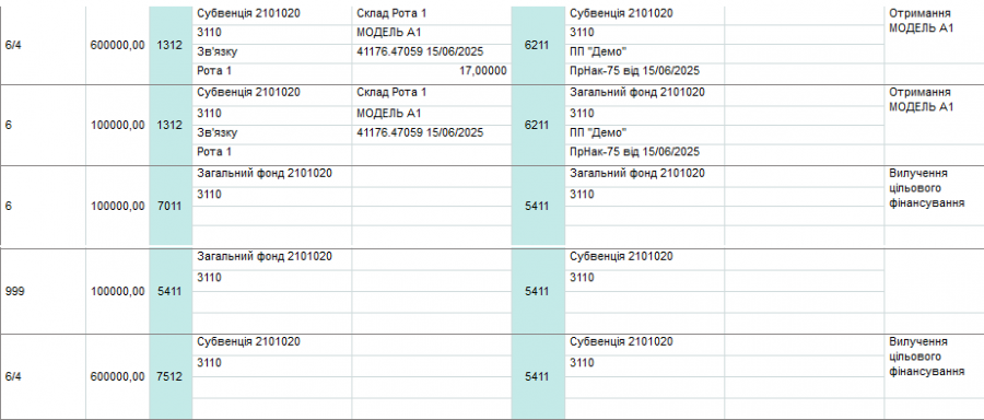 - Відображення активів на 021 рахунку (Активи на відповідальному зберіганні розпорядників бюджетних коштів)