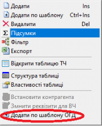 -Використовуйте контекстне меню 1ТЧ та оберіть п.м. Додати по шаблону ОГД.