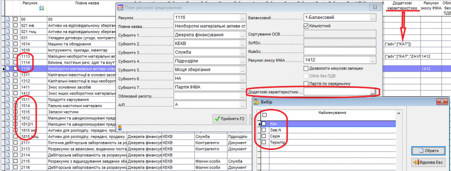 -1- Зміна якісних характеристик - Застосовується для зміни чи становлення додаткових характеристик по об'єкту. Для цього головною умовою є те, щоб у плані рахунків по субрахунках 11-го класу, та рахунків запасів було зазначено, що обєкти видуться з певними додатковими характеристиками.