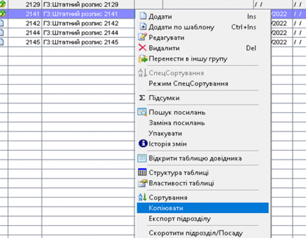 При збільшенні кількості підрозділів з ідентичними посадами, є можливість копіювати підрозділ