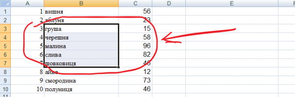 7.На Excel листі виділити мишкою або за допомогою клавіатури (shift + стрілки) потрібний діапазон клітин